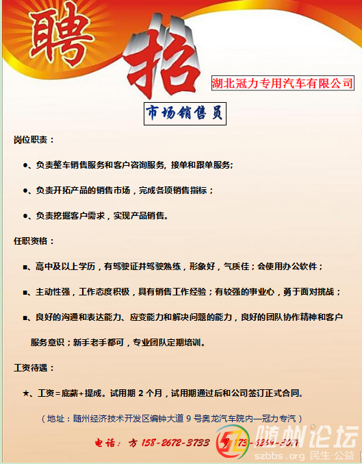 尋求一群有夢想,有理想志同道合的伙伴! 高薪誠聘國際貿(mào)易、市場營銷等銷售人員、跟單銷售人員,歡迎各位同事積極推薦,公司提供免費培訓及廣闊的發(fā)展平臺。 ...
