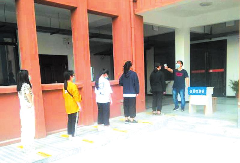 為實(shí)現(xiàn)學(xué)校順利開學(xué),近日,隨縣二中組織了一場(chǎng)針對(duì)高三學(xué)生返校復(fù)學(xué)的特別演練,學(xué)校校級(jí)領(lǐng)導(dǎo)、全體中層干部、高三教師、安保人員、后勤員工146人參加了演習(xí)活動(dòng)。圖為演練進(jìn)入教室前排隊(duì)進(jìn)行體 ...