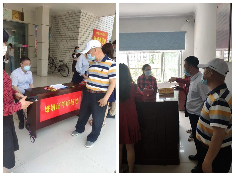 5月20日,一大波前來曾都區(qū)民政局婚姻登記處領(lǐng)證的新人們有序等候,臉上都洋溢著幸福笑容。他們安靜有序的進行體溫檢測、酒精消毒、審核資料、領(lǐng)取號碼、填寫登記表、證件辦理……辦證大廳秩序井然, ...