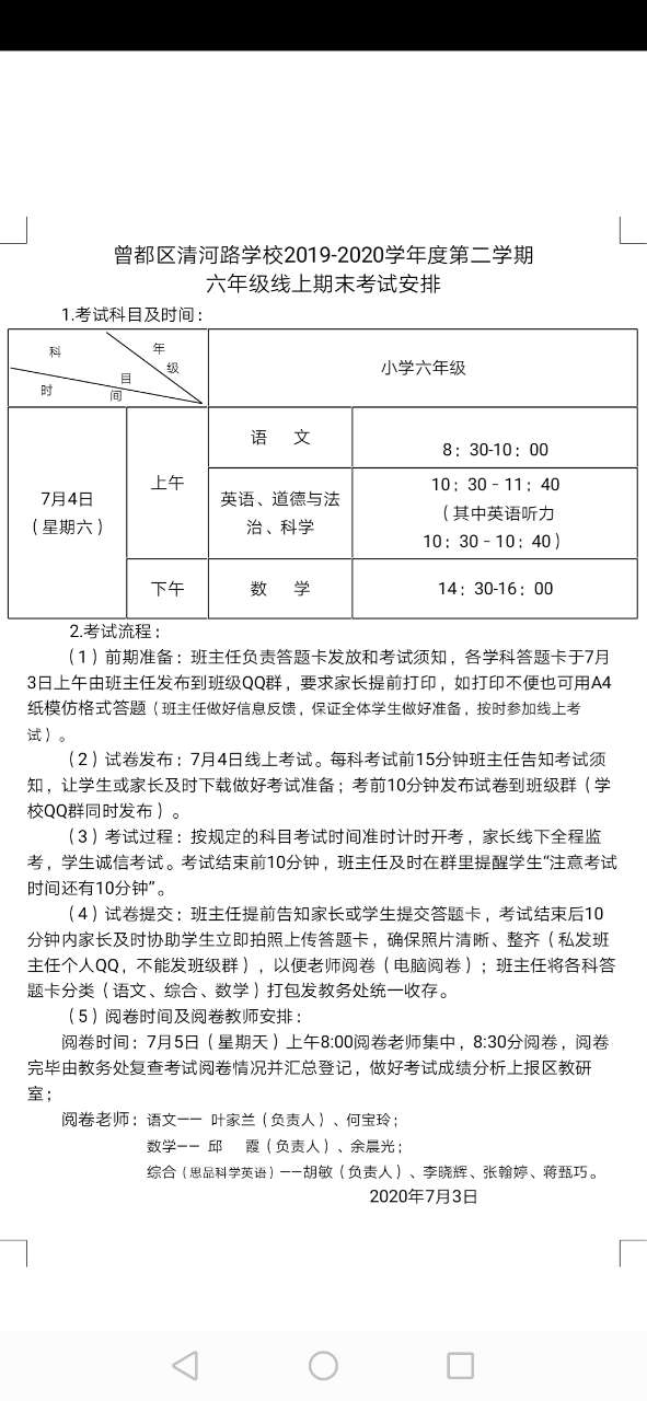 隨州論壇訊 黃加強報道:根據(jù)區(qū)教研室《關于2019-2020學年第二學期義務教育階段學校期末調(diào)研測試有關事項的通知》有關安排,充分考慮疫情期間特殊情況,學校組織召開了六年級畢業(yè)班線上 ...
