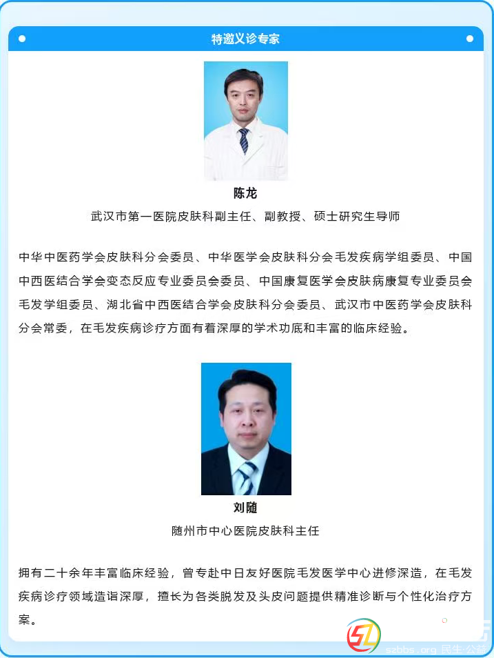 本帖最后由 開(kāi)心一點(diǎn) 于 2025-8-12 16:46 編輯 隨著生活節(jié)奏的加快 脫發(fā)、頭皮油膩、頭屑增多等毛發(fā)問(wèn)題 困擾著越來(lái)越多的人 作為國(guó)家中西醫(yī)結(jié)合醫(yī)學(xué)中心 毛發(fā)專(zhuān)病醫(yī)聯(lián)體的成員單位 隨州市中心醫(yī)院皮膚科將于8月1 ...