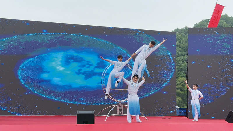 集中示范活動啟動儀式結(jié)束后,“荊楚紅色文藝輕騎兵”文藝惠民演出在激昂的旋律中拉開帷幕。廣場上座無虛席,匯成一片熱情的海洋。