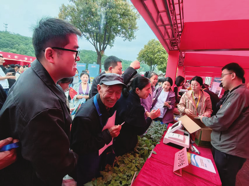 上午9時許,雖然下著淅淅瀝瀝的小雨,廣場上已是熱鬧非凡。理論宣講、文藝展演、科普服務(wù)、圖書贈閱、義診送藥、法律咨詢、政策輔導(dǎo)……幾十個服務(wù)展位依次排開,像一條“惠民長廊”,把優(yōu)質(zhì)資源送到田間地頭,把暖心服務(wù)送到群眾身邊。